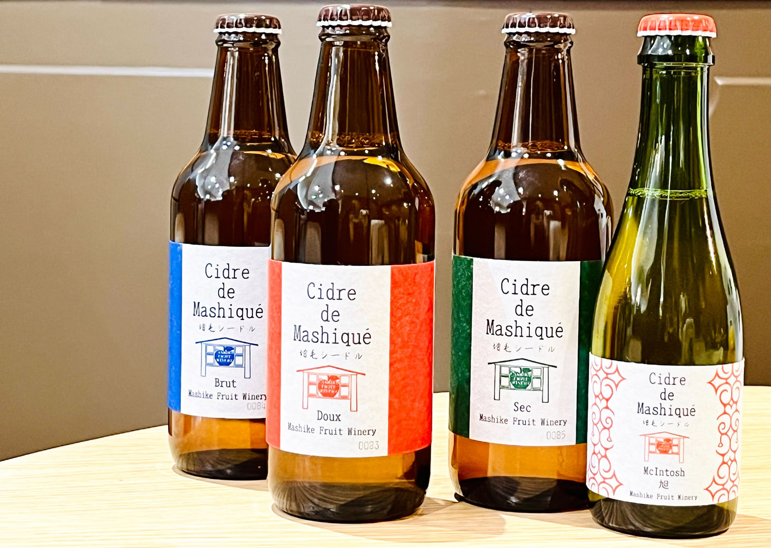 人気商品は「増毛シードル」。甘口、中口、辛口をご用意しておりますので、お好みのものをお選びいただけます。他にも日本酒、ワイン、純米酒など豊富なラインナップが揃っております。